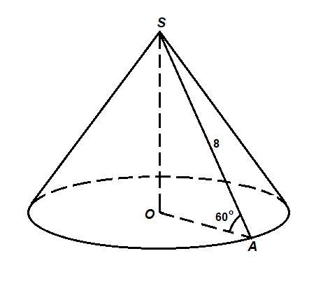 твірна конуса дорівнює 8 см і утворює з площиною основи кут 60 . Знайдіть радіус основи конуса та його висоту