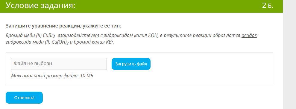 CuBr2+2KOH →Cu(OH)2(↓)+2KBr тип реакции обмена