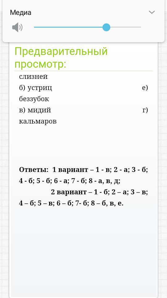 Скажите, пожалуйста, ответы на тест "Моллюски", 1 и 2 вариант, Гекалюк 7 класс биология