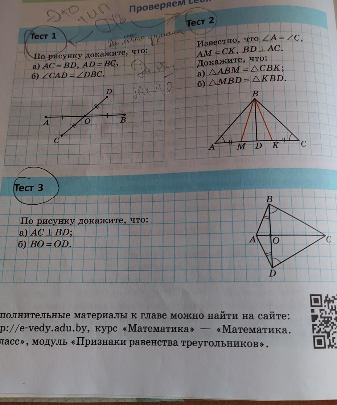 2)Из условия угол АОС и угол DOB-вертикальные =>АОС=DOB=> треугольник АОС=треугольнику DOВ(по теореме об угле и двух сторонах)=>АС=ВD, АD=ВC. ч.т.д.