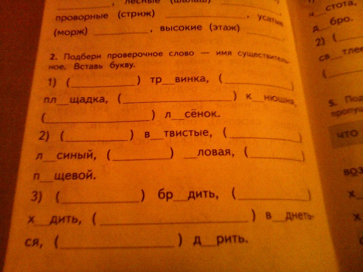 2. Травушка - травинка, площадь - площадка, конь - конюшня, лис - лисёнок. Ветвь - ветвистые, лис - лисиный (лес - лесиный ?), ель - еловая, пища - пищевой. Брод - бродить, ход - ходить, вид - виднеться, дар - дарить.
