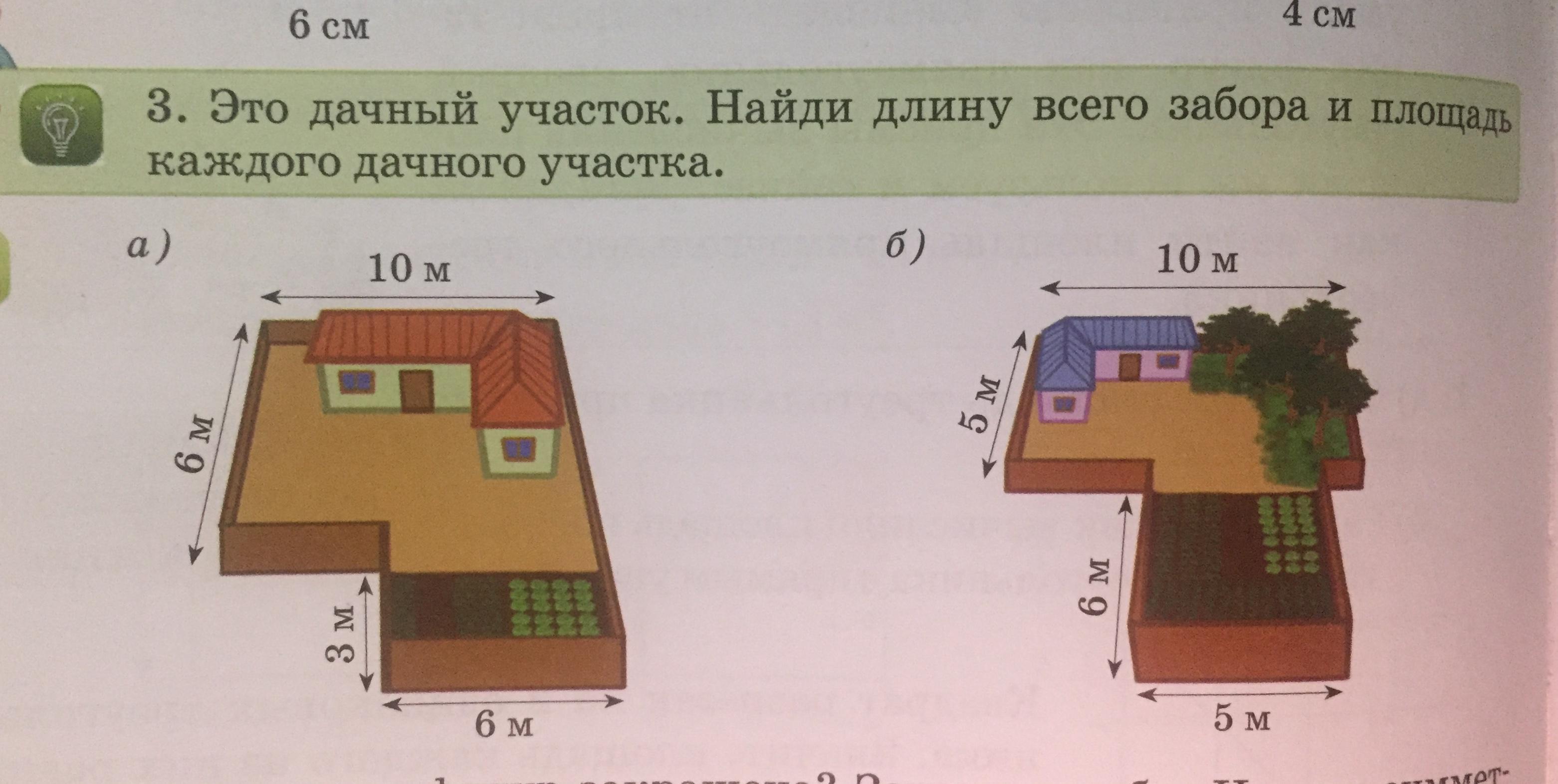 Это дачный участок .Найди длину всего забора и площадь каждого дачного участка