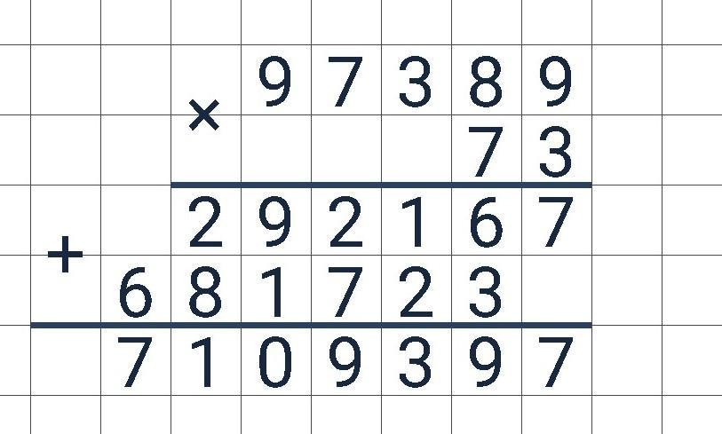 Скоко будет 97389*73 в столбик двухзначным решением! Дам 30 баллов!