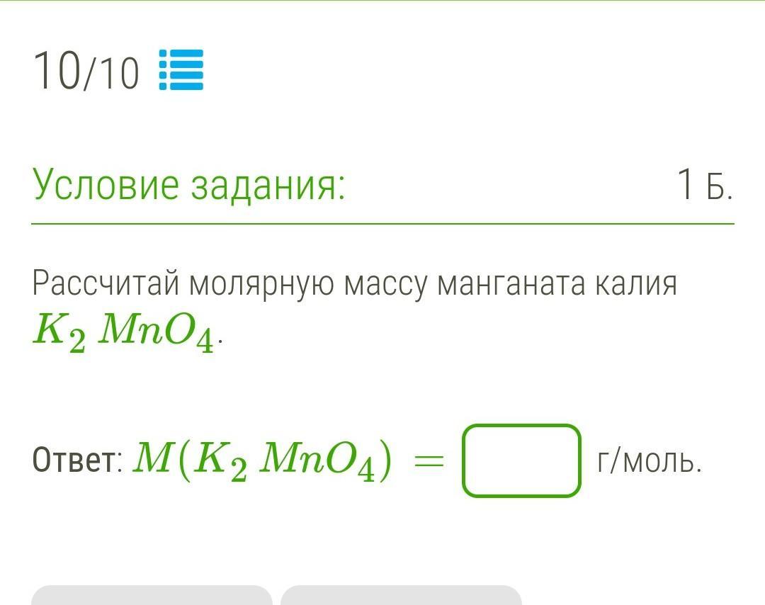 M(K2MnO4)=39*2+55+16*4=197 г/моль