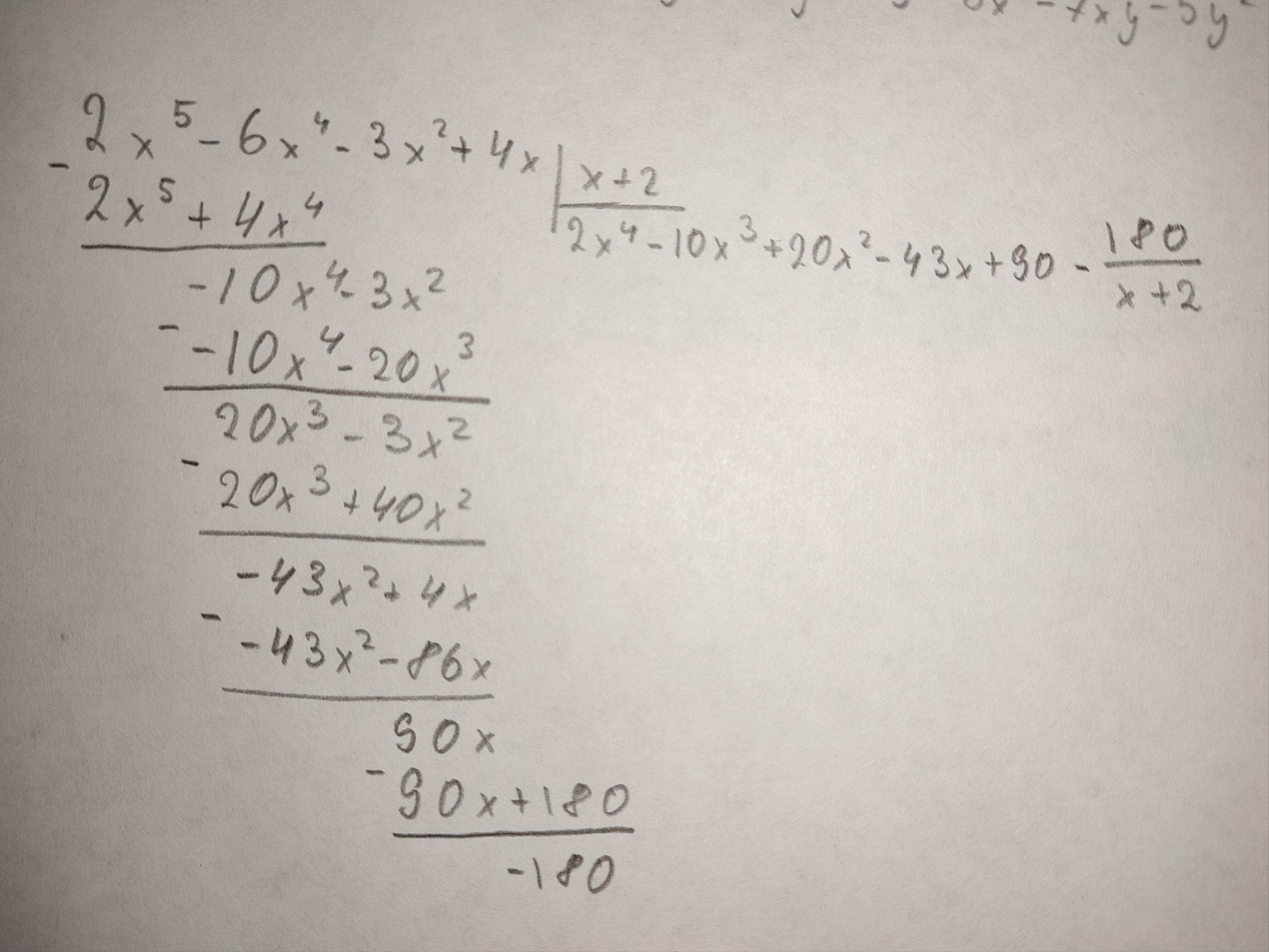 б)P(x) = 2х5-6х4-3х2 + 4х на Q(x) = х + 2