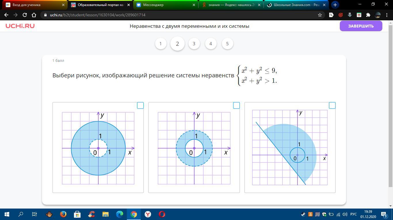 1, т.к. по системе радиусы 1 и 3, а в первом как раз 1 и 3 клеточка
