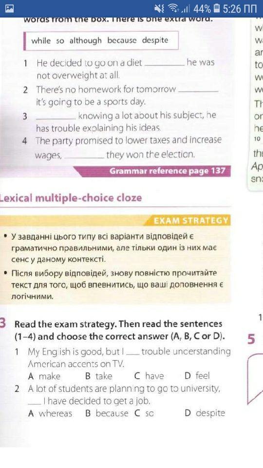 1 because 2 despite 3 as a result 4 while 5 therefore 6 although 7 in spite of