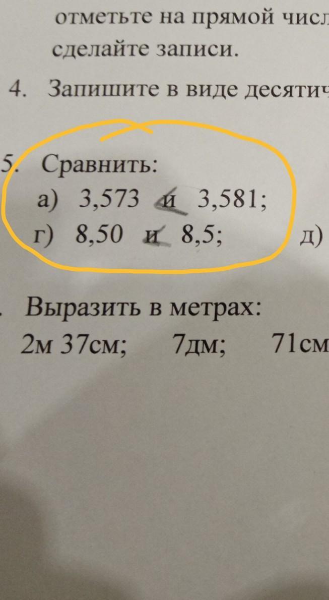 В пункте г) оба варианта означают одно и то же, так как после запятой у нас может быть бесконечное количество нулей, и они не будут ничего значить. Если убрать «0» в первом числе, то получается равное ему «3,5».