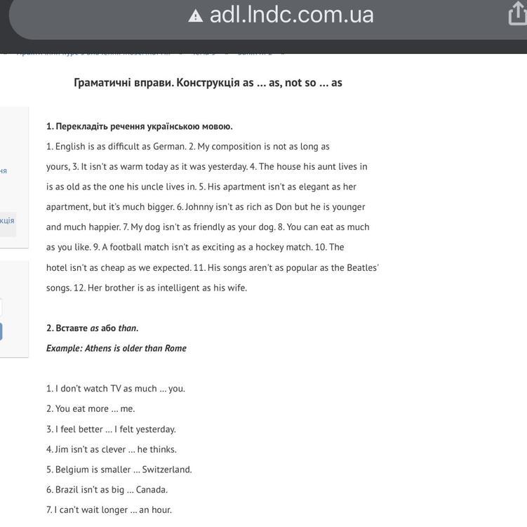 2.Моя композиція не така тонка, як ваша. 3. Сьогодні вже не так тепло, як вчора. 4. будинок, в якому живе його тітка, такий же старий, як і будинок, в якому живе його дядько.