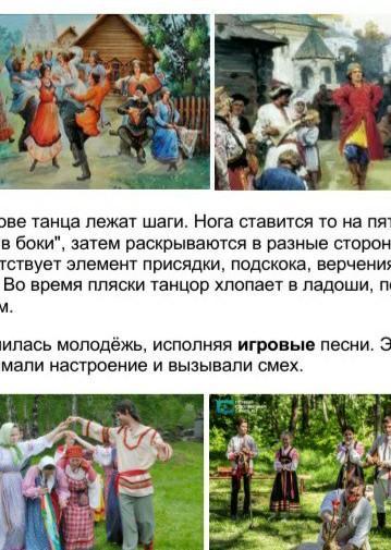 на картинках изображены танцы-под рус.народ. песни танцевали(чаще всего)