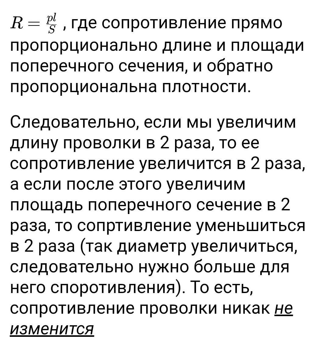 как изменится сопротивление металлической проволоки,если его длину и площадь поперечного сечения увеличить в 2 раза?