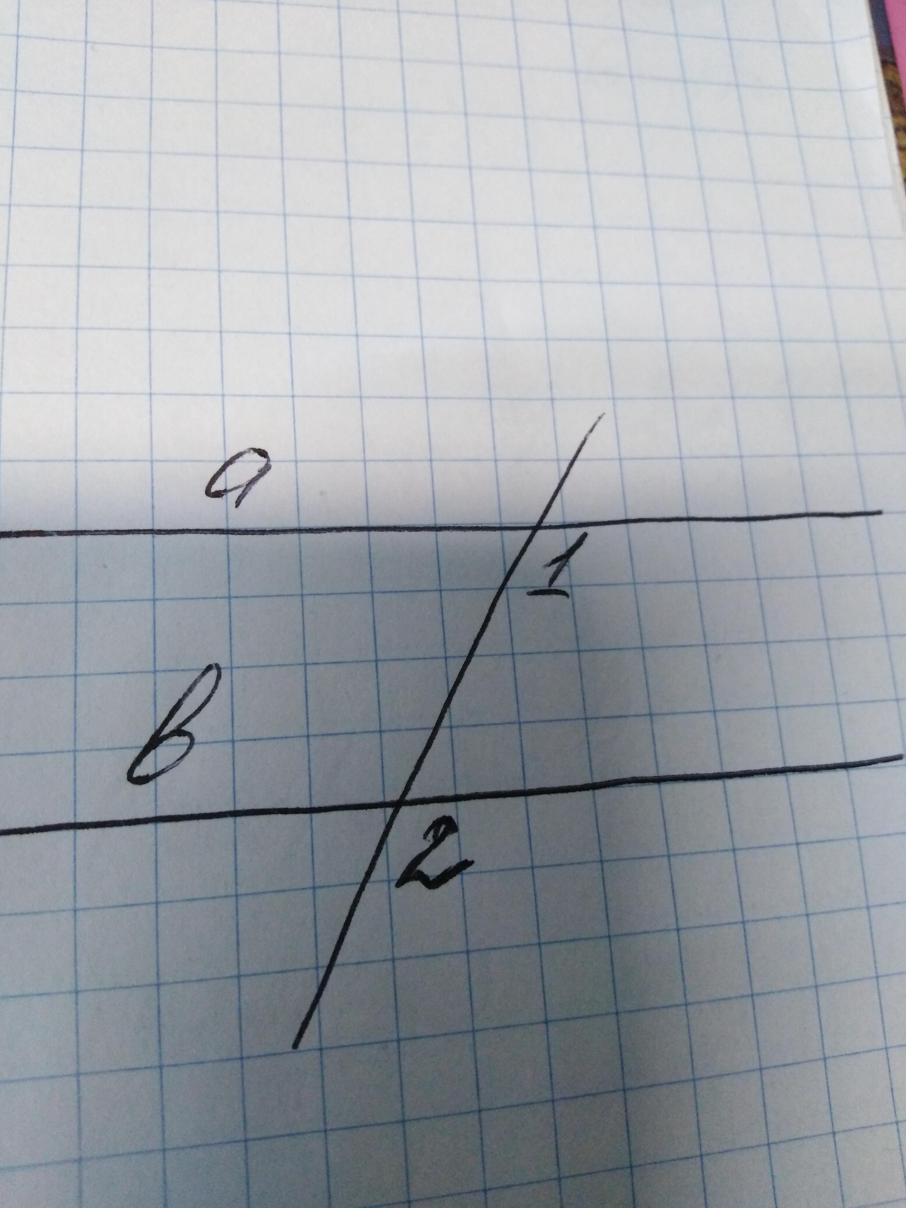 Сумма углов 1 и 2 =180°. Докажи, что прямые а и в паралельны.