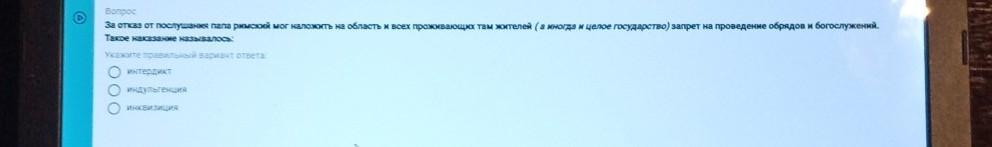Запрет папы римского на проведение богослужений и релегиозных обрядов на какой-либо территории.