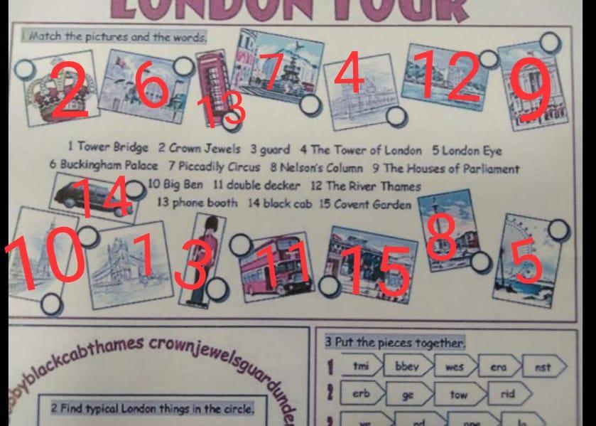 потрібно в кружечках що біля картинок написати цифру яка є правильною по перекладу