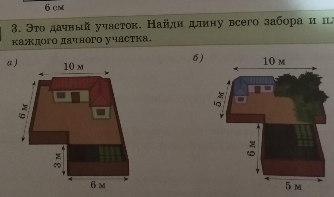 3. Это дачный участок. Найди длину всего забора и площадь