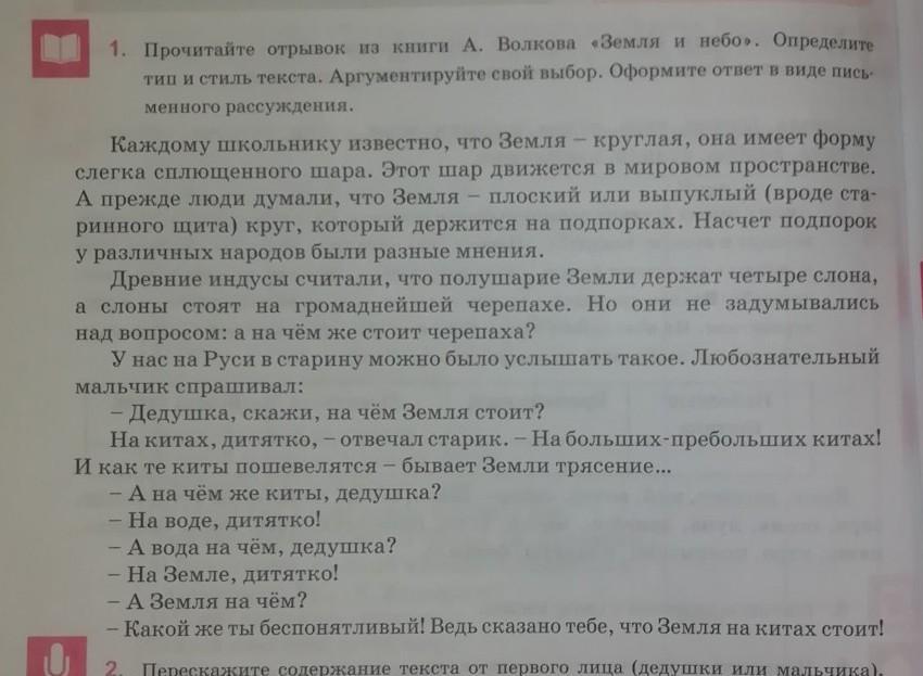 1.Прочитайте отрывок из книги А. Волкова «Земля и небо» в упражнении 1, стр.64. Определите тип и стиль текста. Аргументируйте свой выбор.