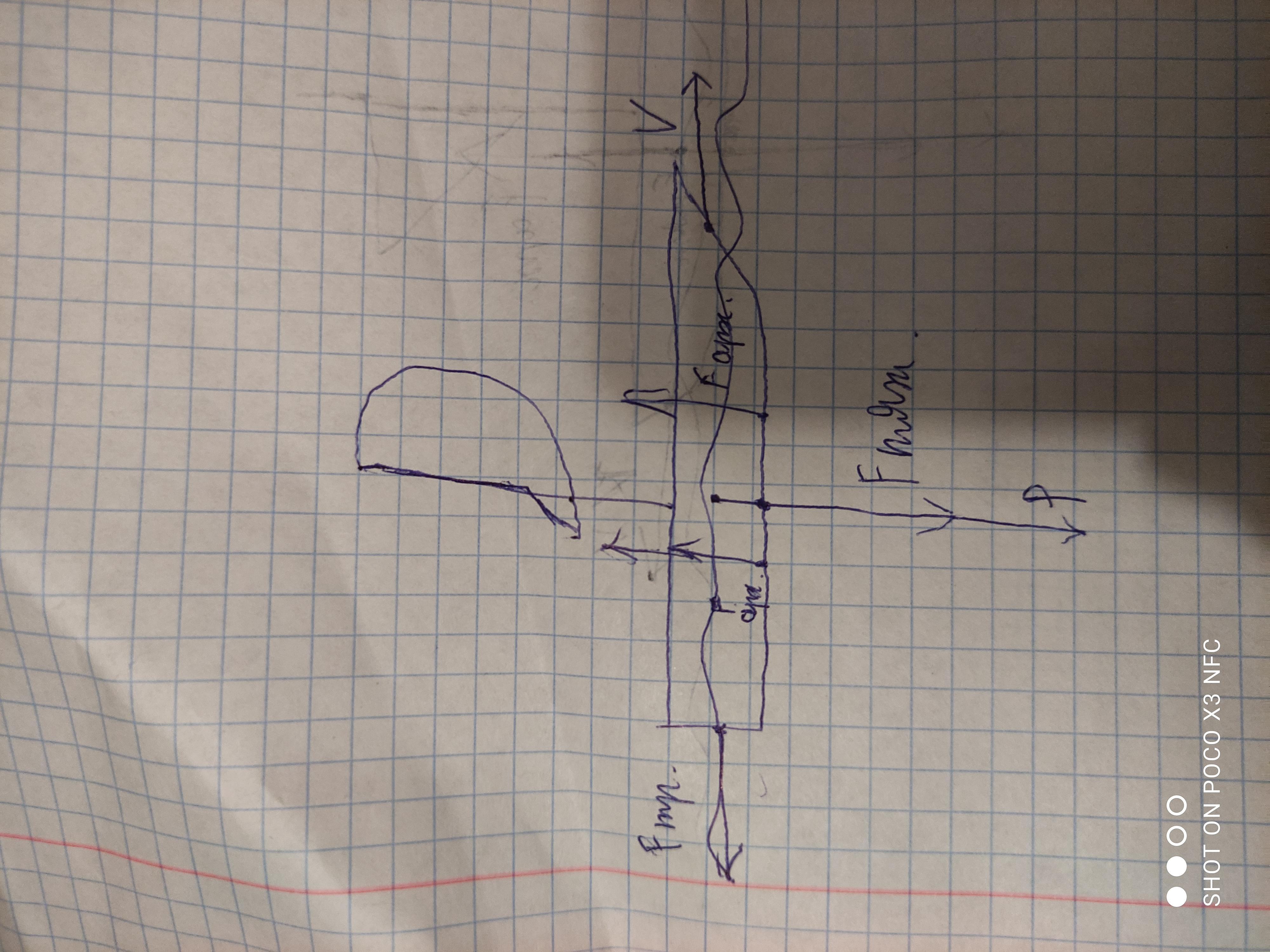 Вот я нарисовал все стандартные силы, действующие на лодку во время равномерного движения.