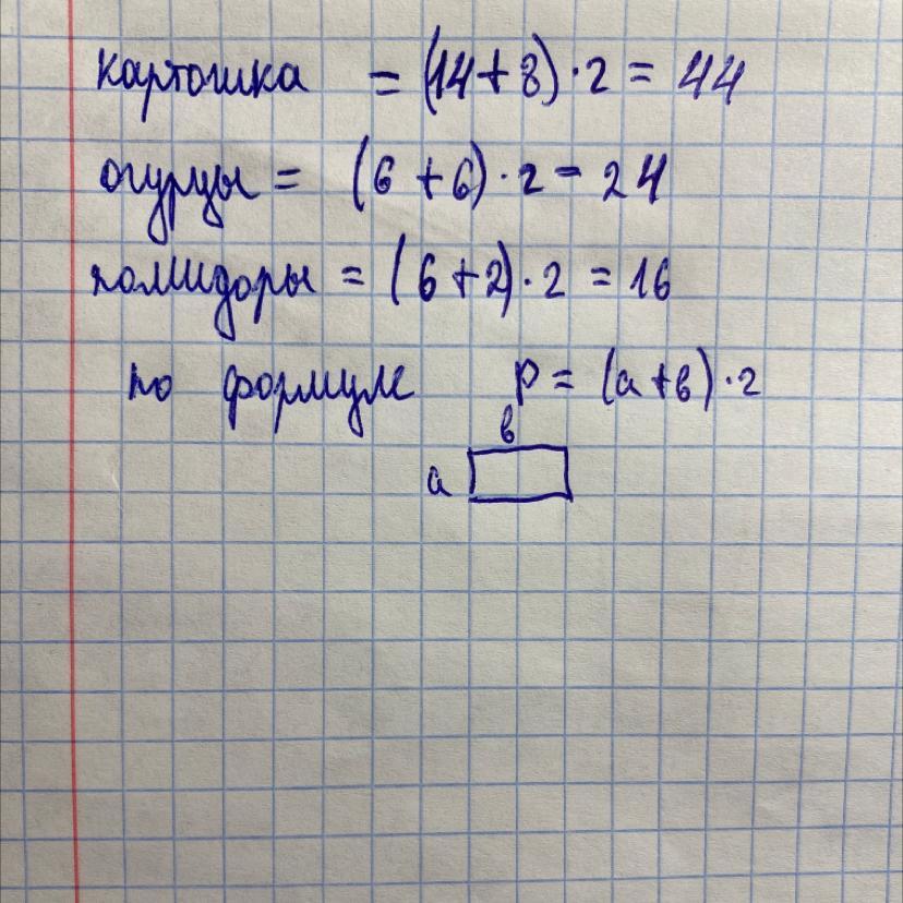P картошки = (8 м. + 14 м.) • 2 = 44 м.