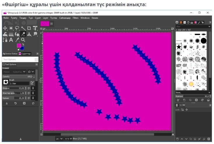 "Өшіргіш" құралы үшін қолданылған түс режимін анықта: