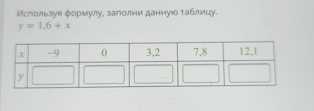 у: -7,4; 1,6; 4,8; 9,4; 13,7