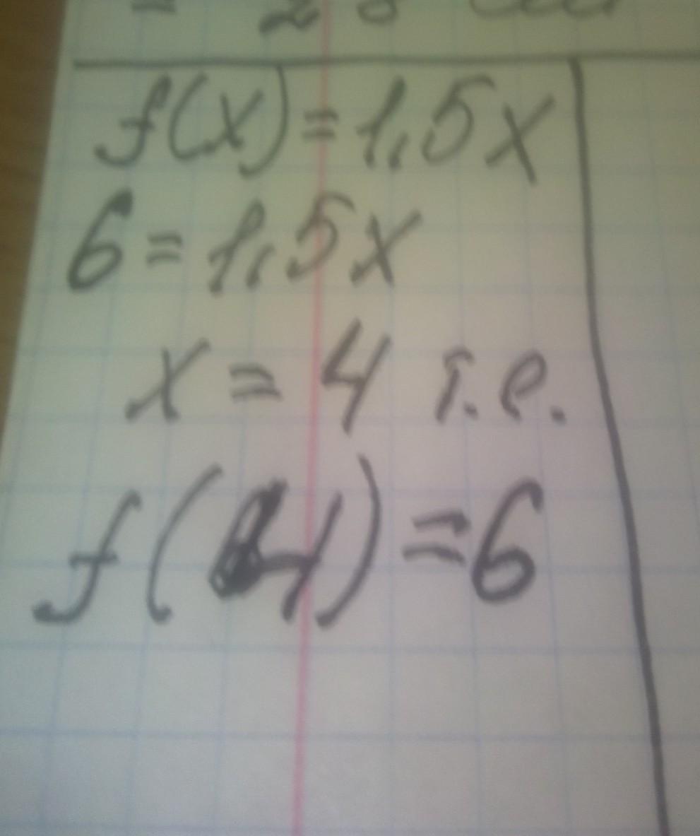 Найдите значение аргумента X, для которого f (X) = 1,5X, значение функции равно 6.