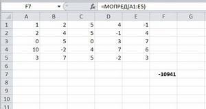 Помогите пожалуйста рассчитать определитель пятого порядка в программе Microsoft Excel. Буду очень благодарен.