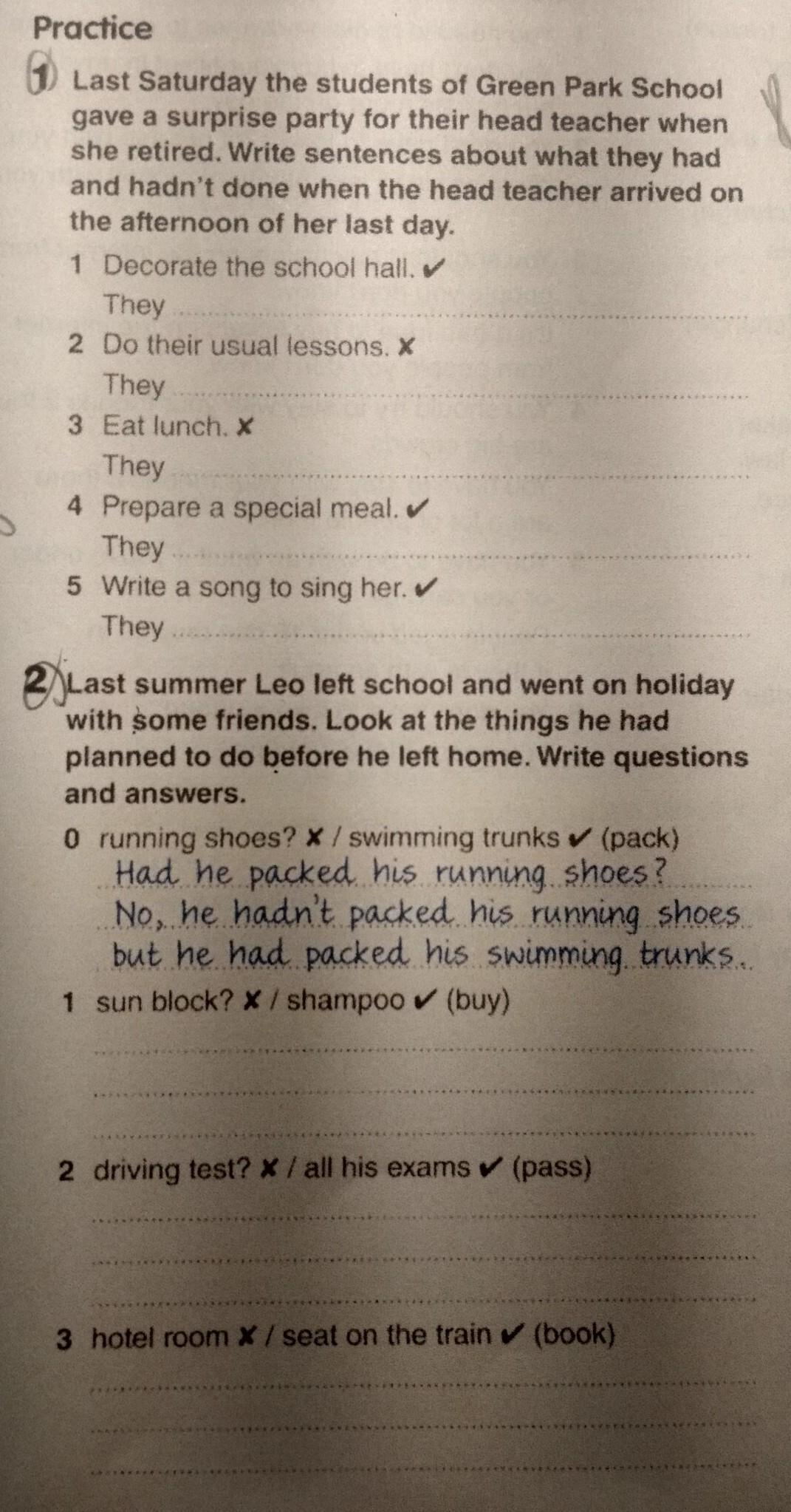 2. Had he bought his sun block? No, he hadn't bought his sun block, but he had bought his shampoo.