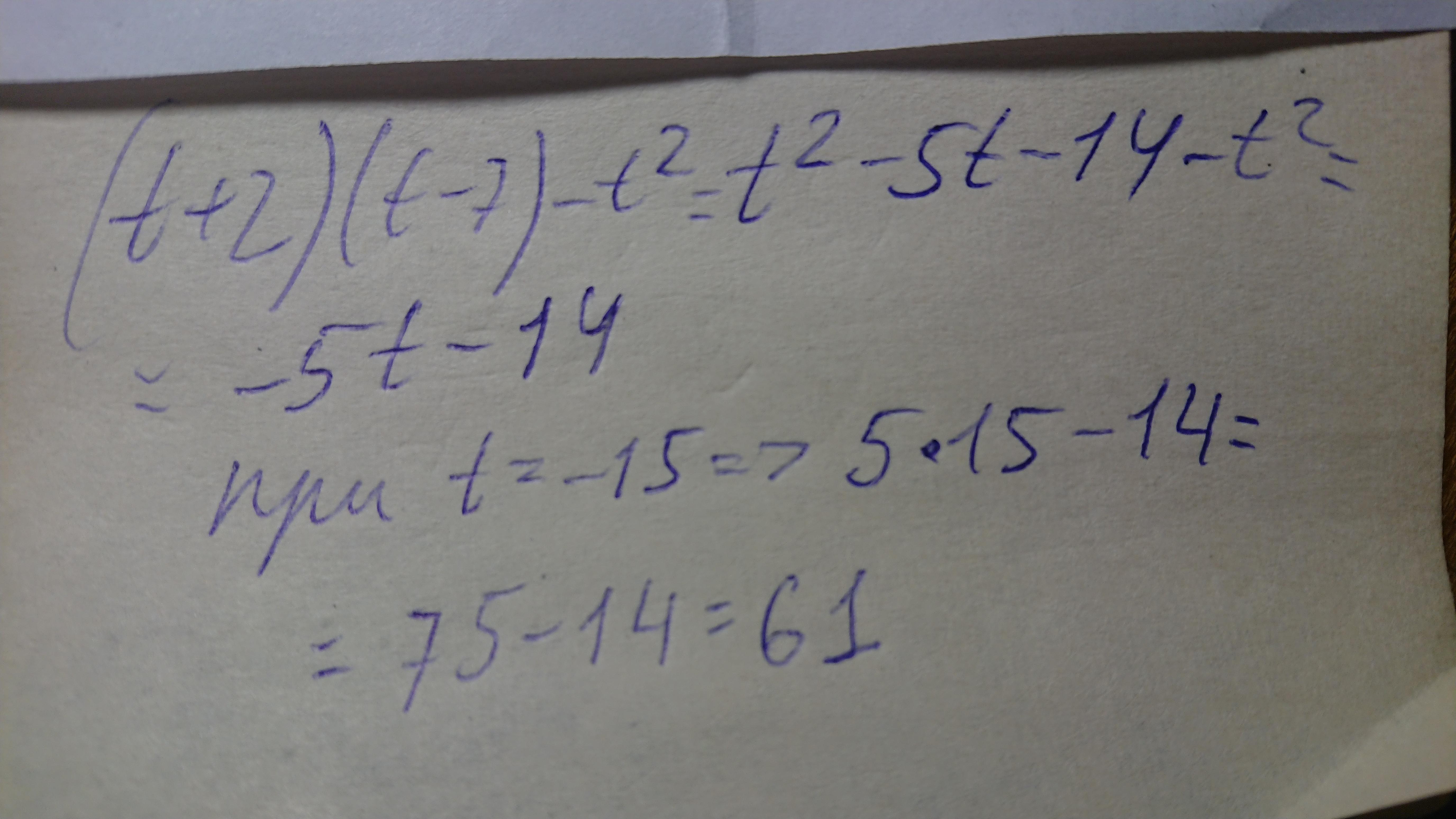 Найди значение выражения (t+2)⋅(t−7)−t2