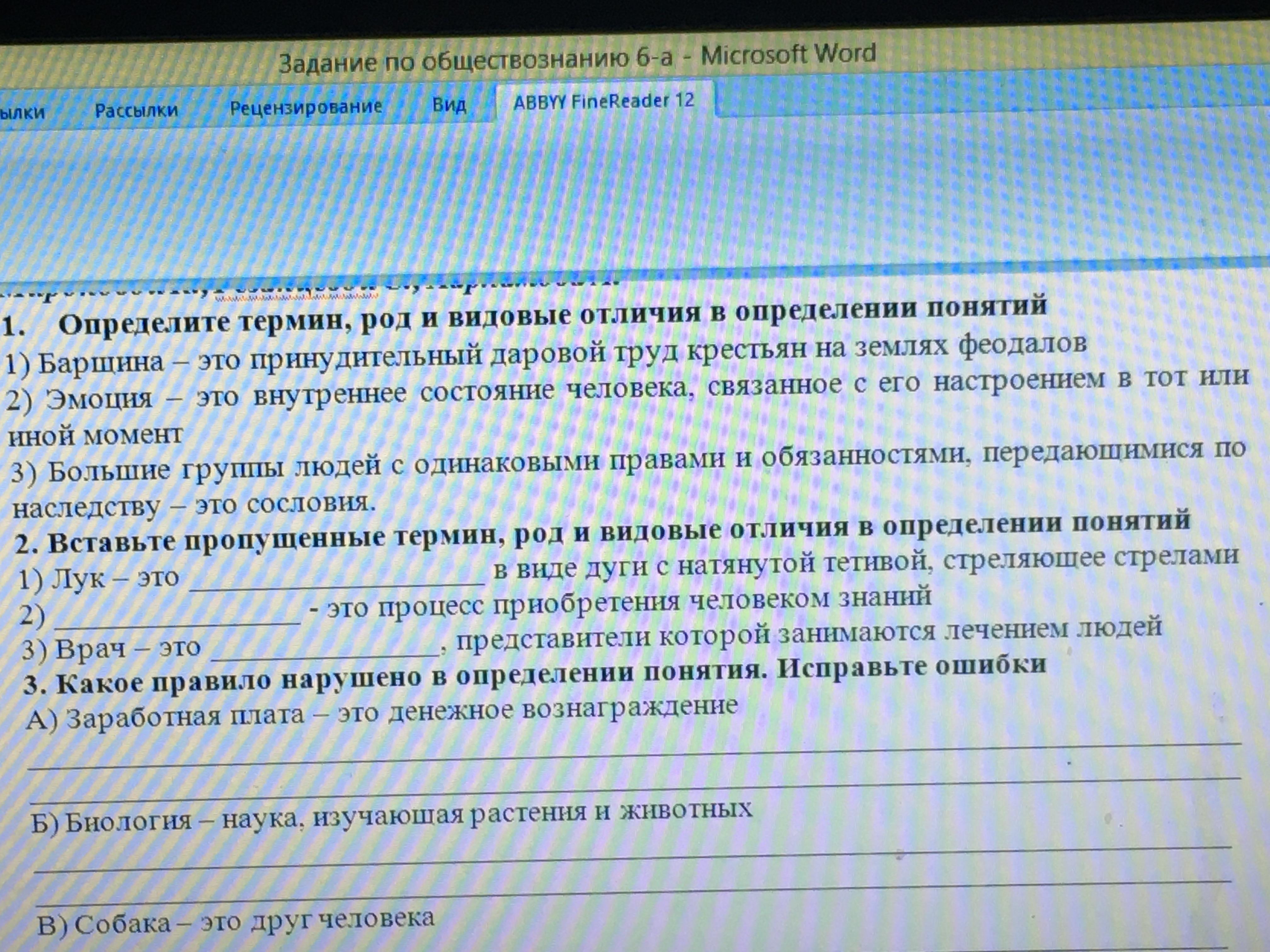 Вставьте пропущенные термин,рот и видовое отличие в определении понятий :