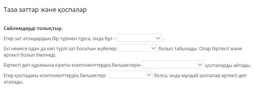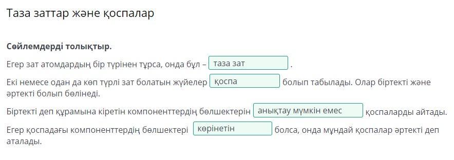 Егер зат атомдардың бір түрінен тұрса, онда бұл – _____