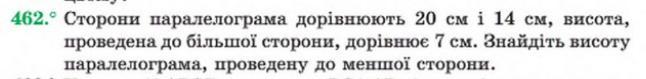 меньша сторона буде b=14 см , тоді висота проведена до неї буде