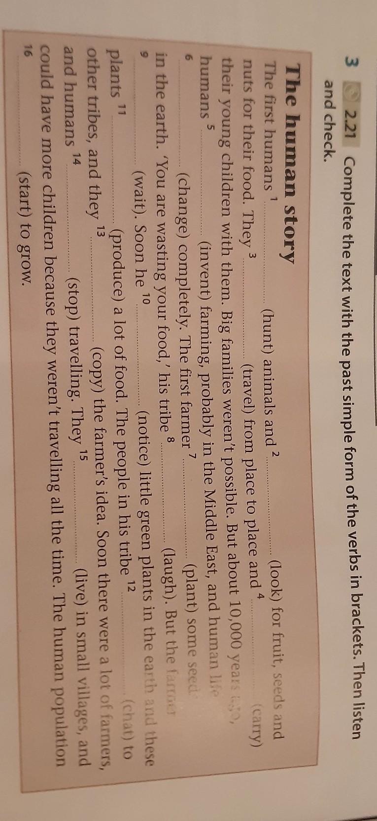 Hunted, looked, traveled, carried, invented, changed, planted, laughed, waited, noticed, produced, chatted, copied, stopped, lived, started
