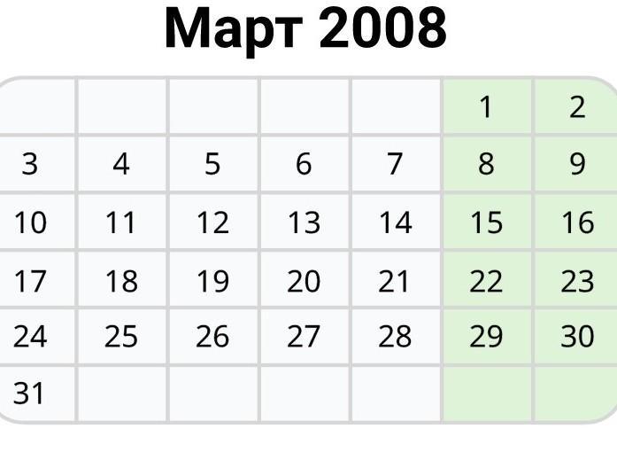 на рисунке показан календарь на март 2008 года. ответь на вопросы
