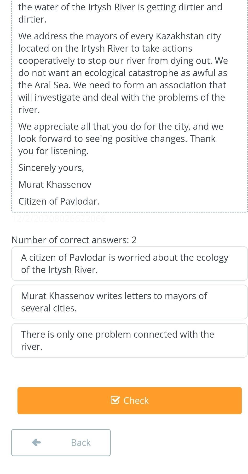 1) a citizen of Pavlodar is worried about the ecology of the Irtysh River