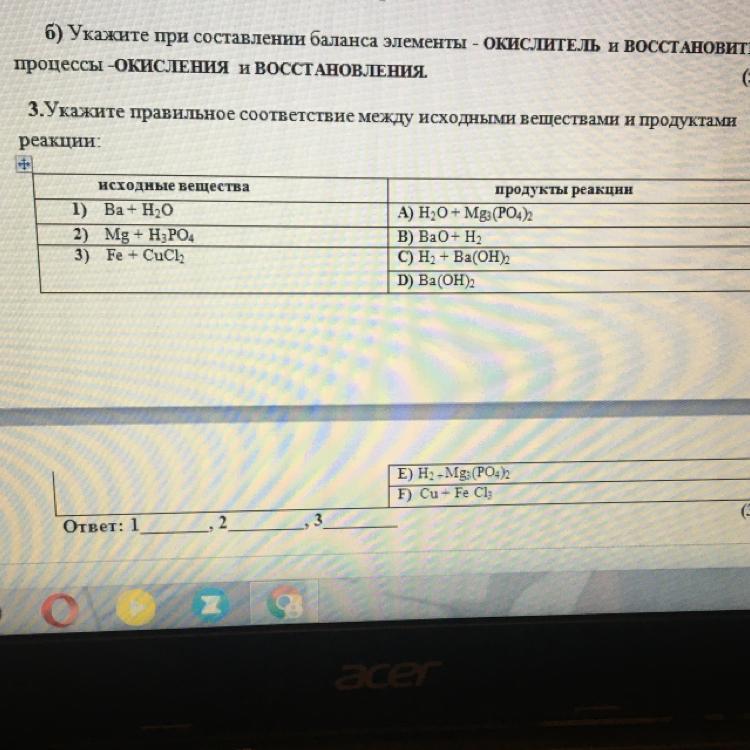 3. Укажите правильное соответствие между исходными веществами и продуктами