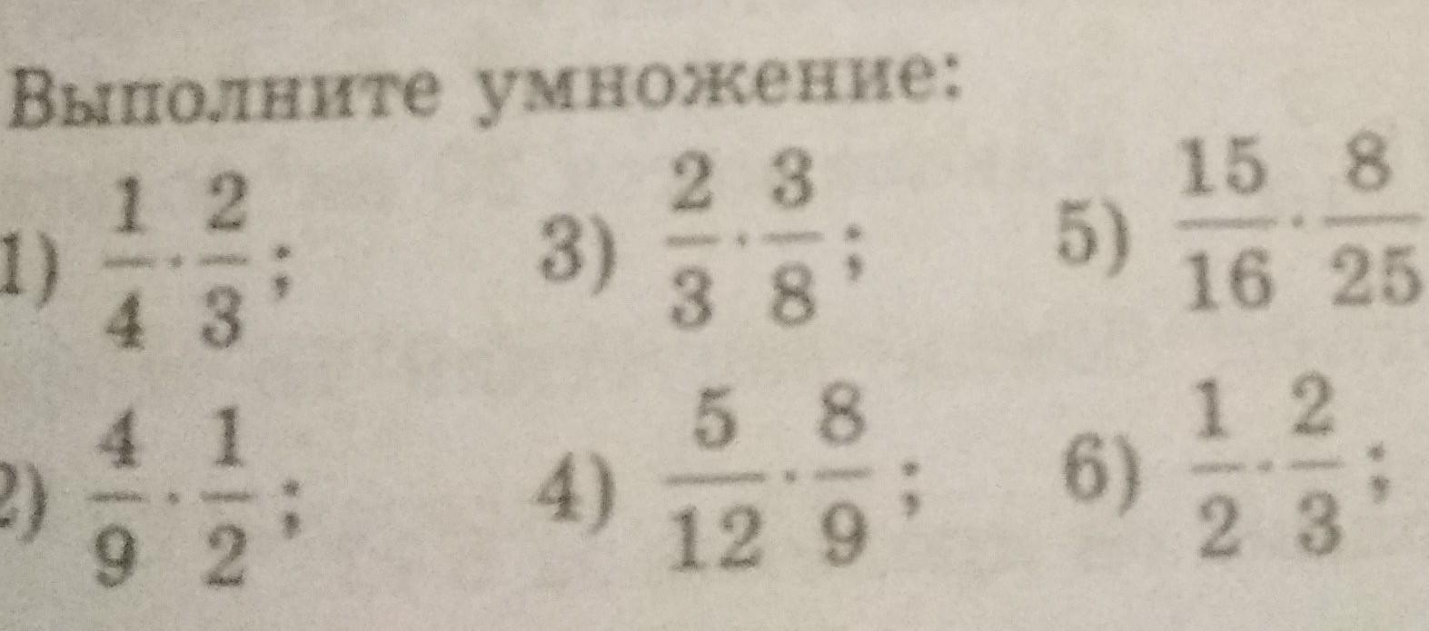 5)15/16•8/25=3/4•2/5=6/20=3/10, 6)1•2•2/3=1/3,