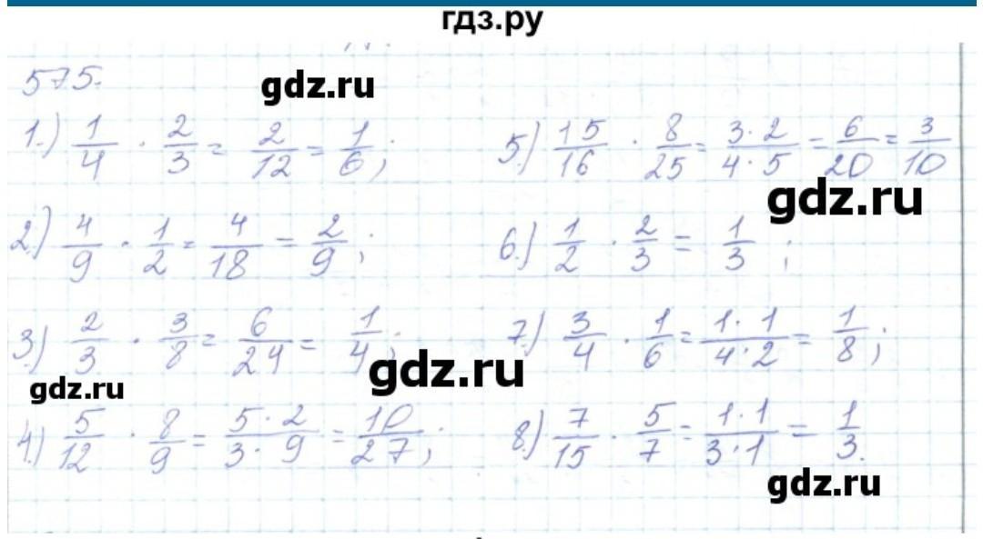 7)3/4•1/6=1/4•1/2=1/8, 8)7/15•5/7=1/3•1/1=1/3