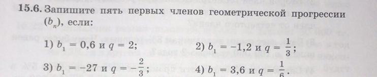 1) b₁=0,6; q=2