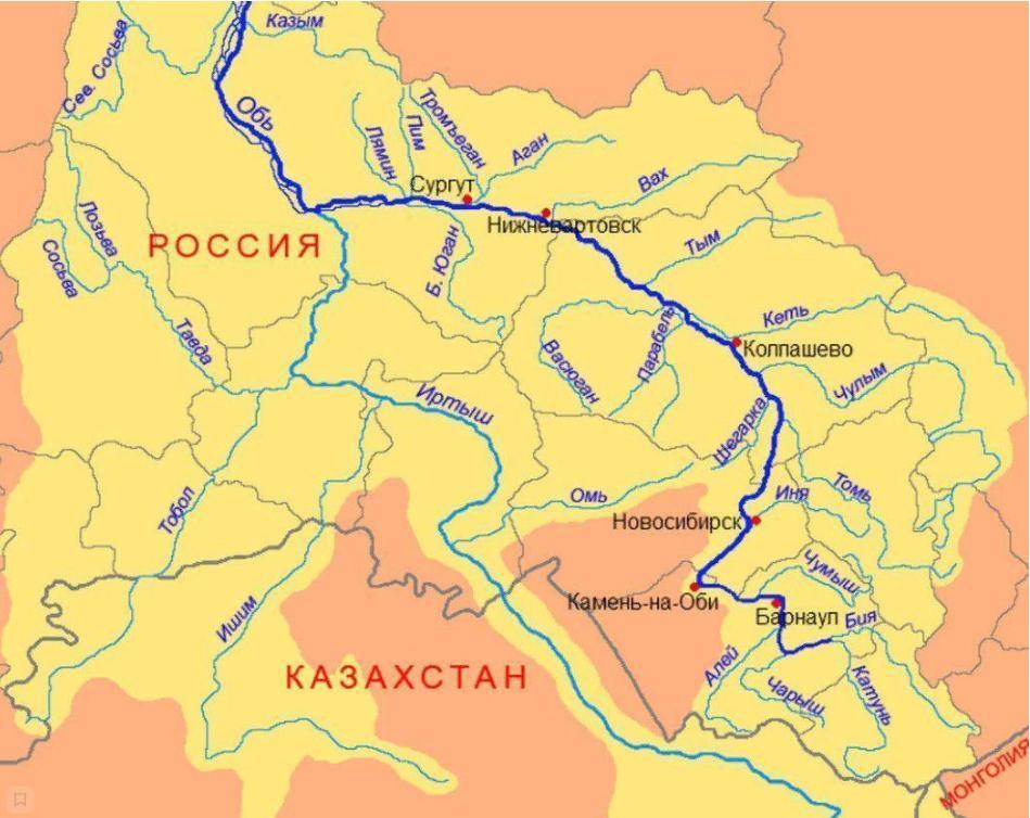 4.Притоки.Правые притоки:Чумыш, Иня, Чулым, Кеть, Тым, Вах.Левые притоки:Иртыш, Васюган, Северная Сосьва.