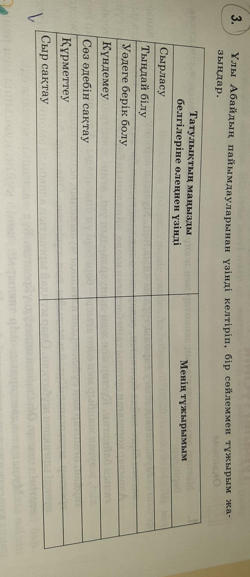 Ұлы Абайдың пайымдауларынан үзінді келтіріп, бір сөйлеммен тұжырым жа-