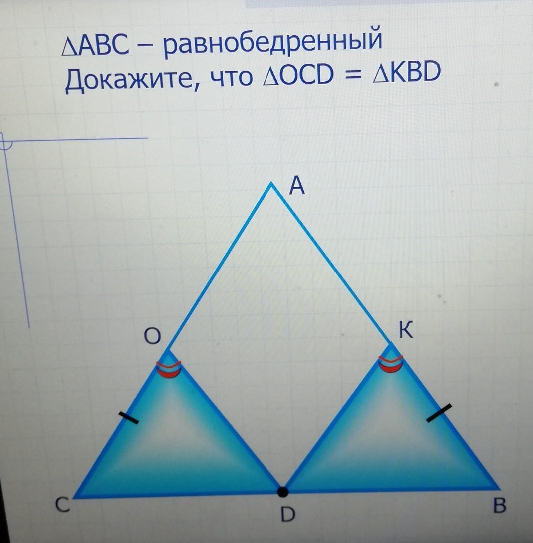 1. Треугольники ABD и ACE равны по первому признаку равенства треугольников (АВ=АС, АD = AE, угол A общий). Следовательно, равны соответствующие стороны BD и CE этих треугольников.