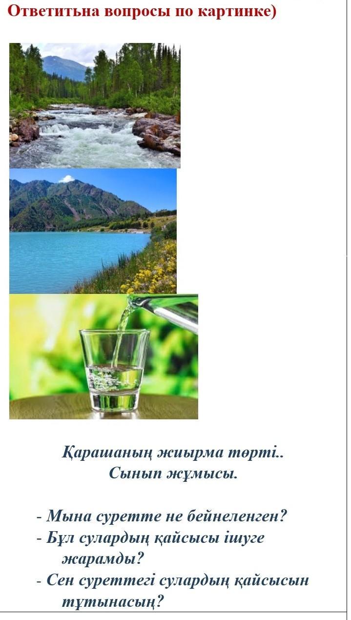 -Бұл суреттерде судың екі түрі берілген.Бірі тұщы су,ал ендігісі ащы су