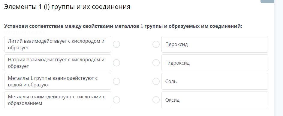 установи соответствие между свойствами металлов 1 группы и образуемых им соединений.