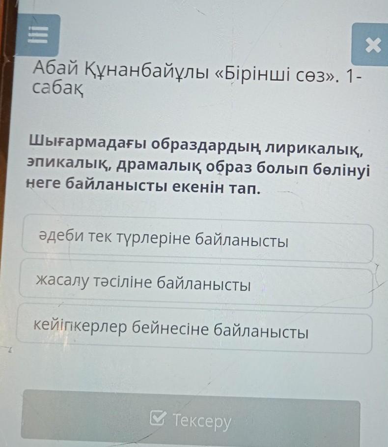 шығармадағы образдардың лирикалық, эпикалық, драмалық образ болып бөлінуі неге байланысты екенін тап