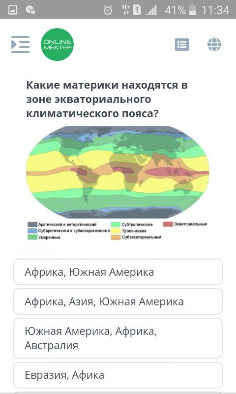 Какие материки находявляется в зоне экваторного климатического пояса ?