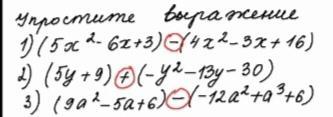 3) (9a²-5a+6)-(-12a²+a³+6) = 9a²-5a+6+12a²-a³-6 = -a²+21a²-5a.