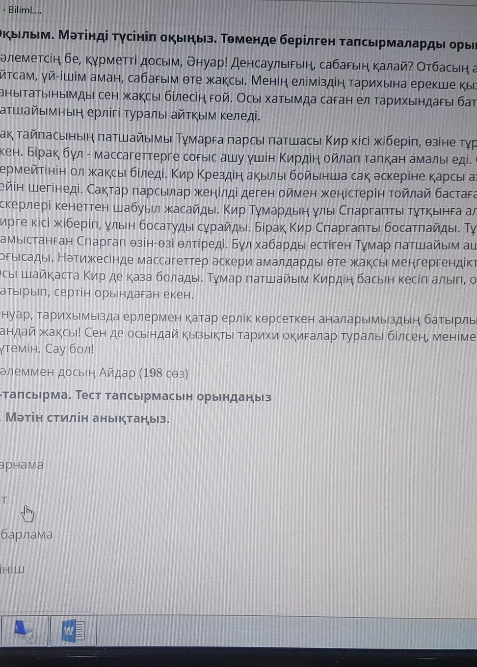 Оқылым. Мәтінді түсініп оқыңыз. Төменде берілген тапсырмаларды орындаңыз.