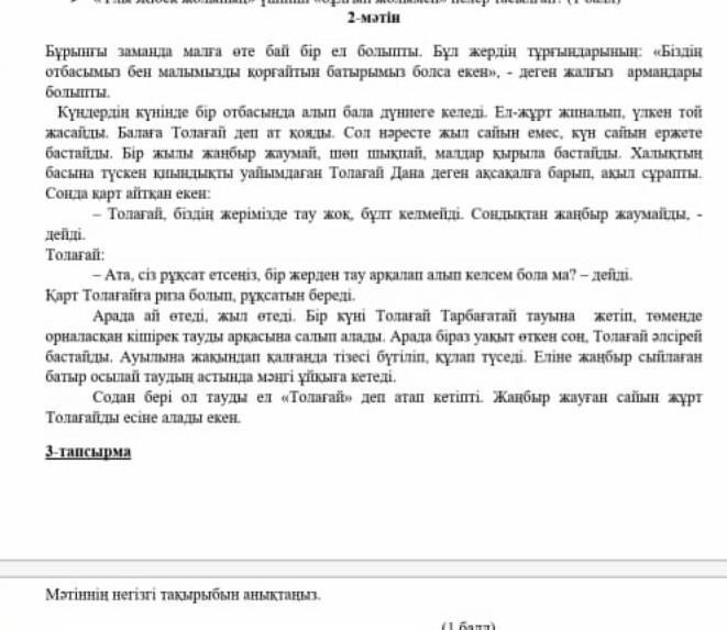Мәтіннің негізгі тақырыбы Тау көтерген Толағай