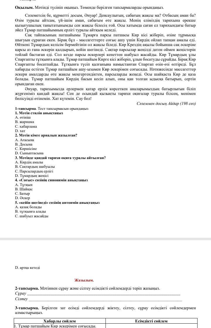 Сілтеу:1)Осы хатымда саған ел тарихындағы батыр әйел Тұмар патшайымның ерлігі туралы айтқым келеді.