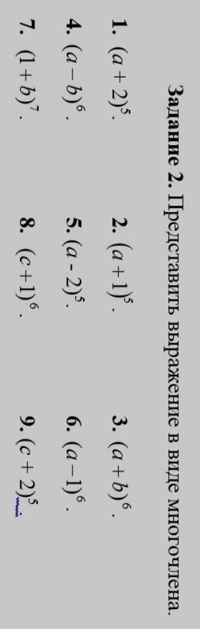 1)\ \ (a+2)^5=a^5+5a^4\cdot 2+10a^3\cdot 2^2+10a^2\cdot 2^3+5a\cdot 2^4+2^5=\\\\=a^5+10a^4+40a^3+80a^2+80a+32\\\\2)\ \ (a+1)^5=a^5+5a^4+10a^3+10a^2+5a+1\\\\3)\ \ (a+b)^6=a^6+6a^5b+15a^4b^2+20a^3b^3+15a^2b^4+6ab^5+b^6\\\\4)\ \ (a-b)^6=a^6-6a^5b+15a^4b^2-20a^3b^3+15a^2b^4-6ab^5+b^6\\\\5)\ \ (a-2)^5=a^5-10a^4+40a^3-80a^2+80a-32\\\\6)\ \ (a-1)^6=a^6-6a^5+15a^4-20a^3+15a^2-6a+1\\\\7)\ \ (1+b)^7=1+7b+21b^2+35b^3+35b^4+21b^5+7b^6+b^7\\\\8)\ \ (c+1)^6=c^6+6c^5+15c^4+20c^3+15c^2+6c+1